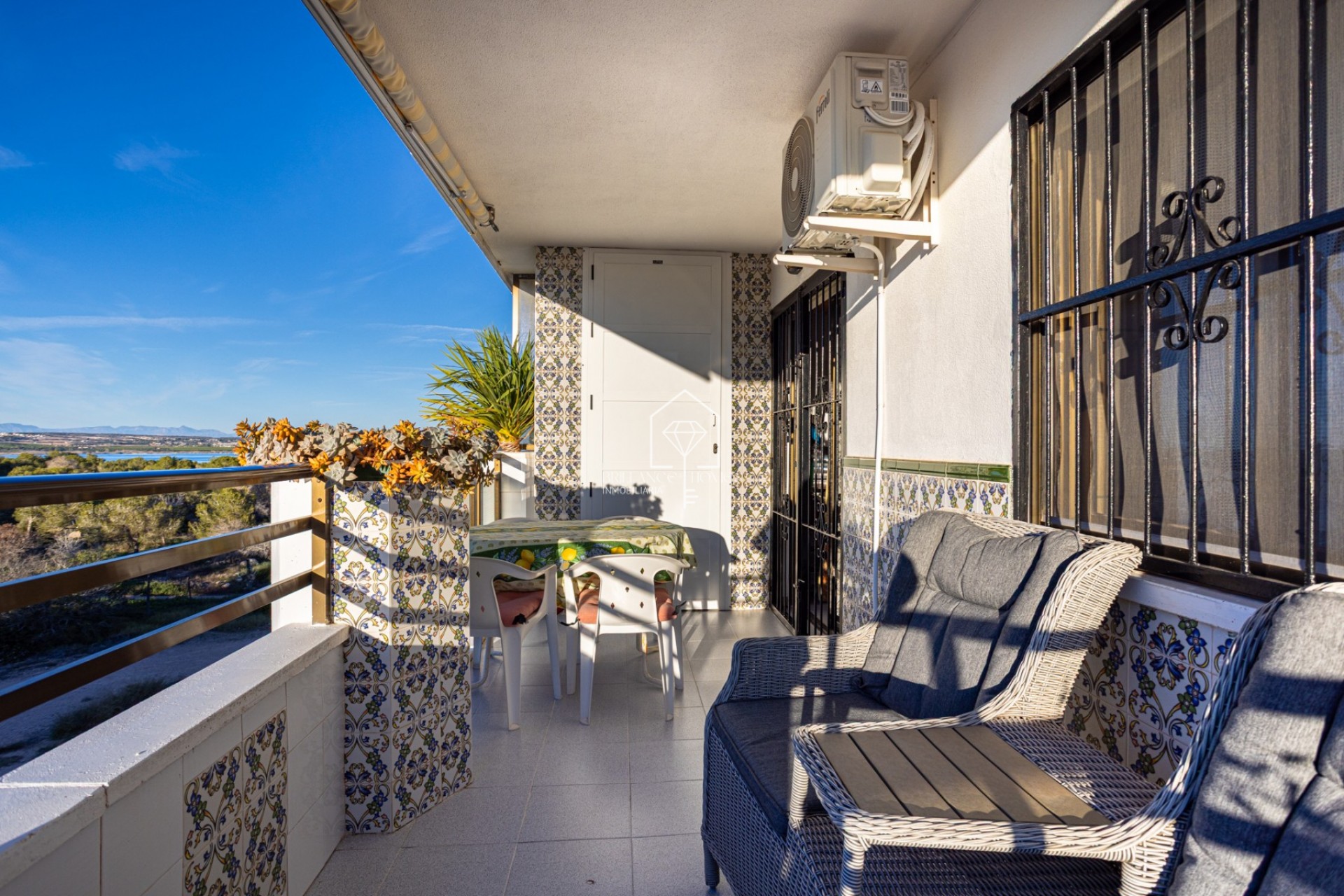 Entdecken Sie diese wunderschöne Wohnung im zweiten Stock eines ruhigen, gepflegten Gebäudes in Urb. San Luis, einem der begehrtesten und am besten erreichbaren Viertel von Torrevieja. Mit einer Wohnfläche von 70 m² bietet diese Immobilie einen praktischen und gut durchdachten Grundriss für komfortables Wohnen das ganze Jahr über. Beim Betreten der Wohnung gelangen Sie in ein geräumiges und helles Wohn-/Esszimmer mit direktem Zugang zu einer gemütlichen Terrasse – ideal, um die Nachmittagssonne zu genießen, mit einem guten Buch zu entspannen oder Zeit mit Freunden zu verbringen. Ein kleiner Abstellschrank aus weißem Aluminium ist ebenfalls vorhanden und bietet viel Stauraum. Dank der Westausrichtung ist die Wohnung den Großteil des Tages von warmem Tageslicht durchflutet. Die separate, voll ausgestattete Küche bietet viel Platz zum Kochen und gleichzeitig Privatsphäre. Die Wohnung verfügt über drei helle Schlafzimmer und ein kürzlich renoviertes Badezimmer. Die Immobilie befindet sich in einem guten Zustand und wird möbliert verkauft – Sie können also sofort einziehen. Eine Klimaanlage ist ebenfalls vorhanden – ein Muss, um das mediterrane Klima optimal zu nutzen. Auf dem Dach des Gebäudes befindet sich ein Gemeinschaftssolarium, wo Sie sonnenbaden, entspannen und die angenehmen Temperaturen sowie den Panoramablick auf die beiden Salzseen der Region genießen können. Perfekte Lage zum Wohnen oder für den Urlaub: In einer ruhigen und dennoch gut erreichbaren Gegend gelegen, finden Sie alles Notwendige in wenigen Minuten. Eine Bushaltestelle befindet sich nur wenige Gehminuten von der Unterkunft entfernt. Strand: Nur 15 Minuten entfernt – ideal für Spaziergänge im Sonnenaufgang oder entspannte Nachmittage. Flughafen: 40 Minuten entfernt – perfekt für Vielreisende. Freizeitangebote: 5 Minuten entfernt mit Restaurants, Cafés, Geschäften und weiteren Annehmlichkeiten. Ein hervorragender Wasserpark ist nur wenige Minuten entfernt. Golfplatz: 10 Minuten entfernt – ein zusätzliches Highlight für Sportbegeisterte. Diese Wohnung ist aufgrund ihrer strategischen Lage und ihres ausgezeichneten Zustands eine hervorragende Wahl als Hauptwohnsitz, Zweitwohnsitz oder Kapitalanlage.