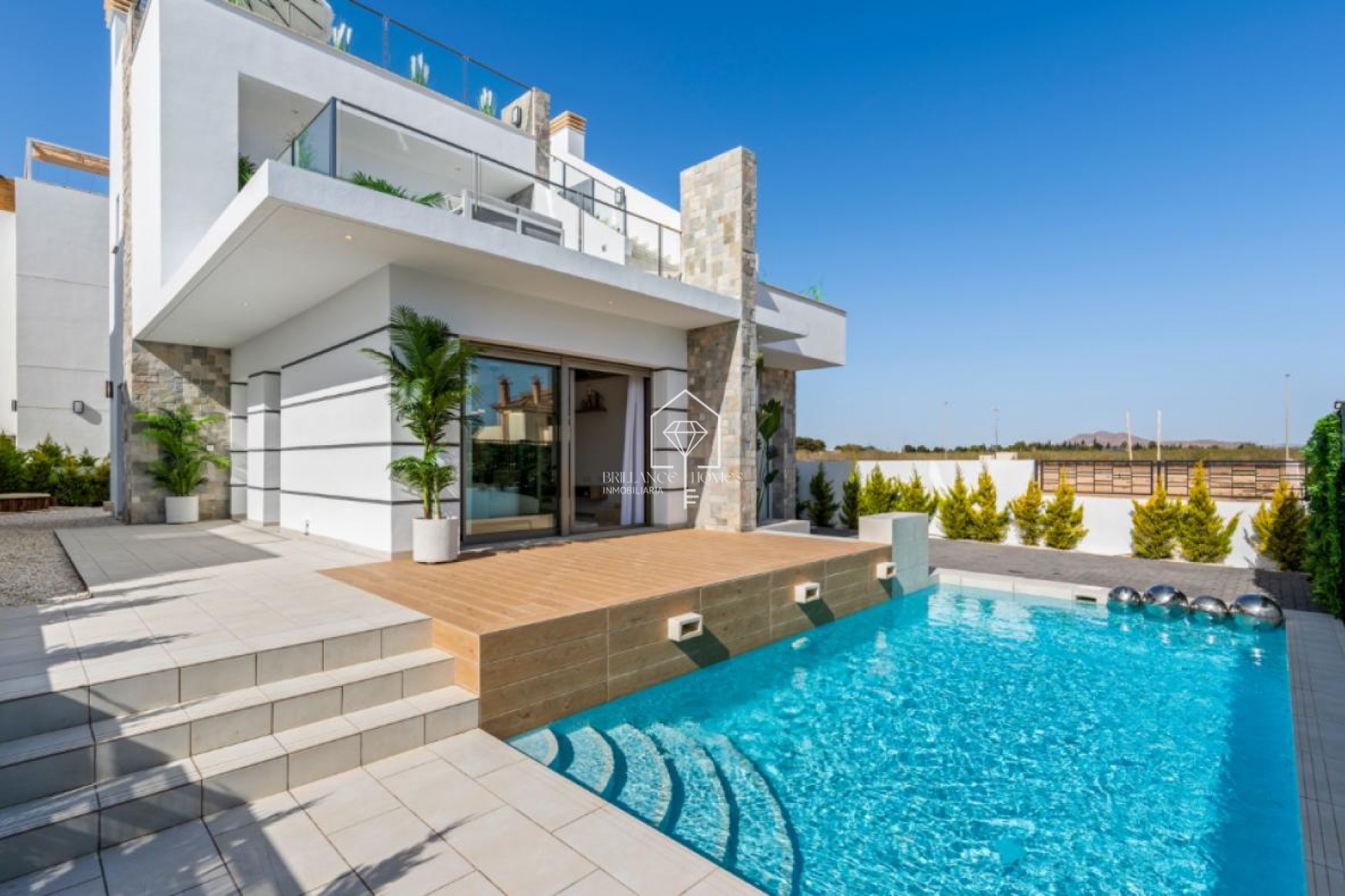 Exclusive luxury villa just 800 meters from the sea in Los Alcázares Discover an impressive detached villa located in one of the most privileged areas of Los Alcázares, just 800 meters from the beach and within walking distance of shopping areas, restaurants, and all essential services for daily life. This elegant property has been designed with high-quality materials and luxury finishes, offering a perfect blend of modern style, comfort, and functionality. It features 3 spacious bedrooms, 3 full bathrooms with heated floors, a fully equipped open kitchen, and a bright living room with direct access to the outdoor areas. Enjoy the sun all year round on its three terraces, in the private solarium, or while relaxing in its garden with private pool. Additionally, it offers two independent parking spaces, storage room, and is equipped with an installed air conditioning system. An ideal option for living year-round as well as enjoying vacation stays by the Mediterranean. This villa represents an excellent investment opportunity in a strategic location on the Costa Cálida. Come visit and let yourself be captivated!