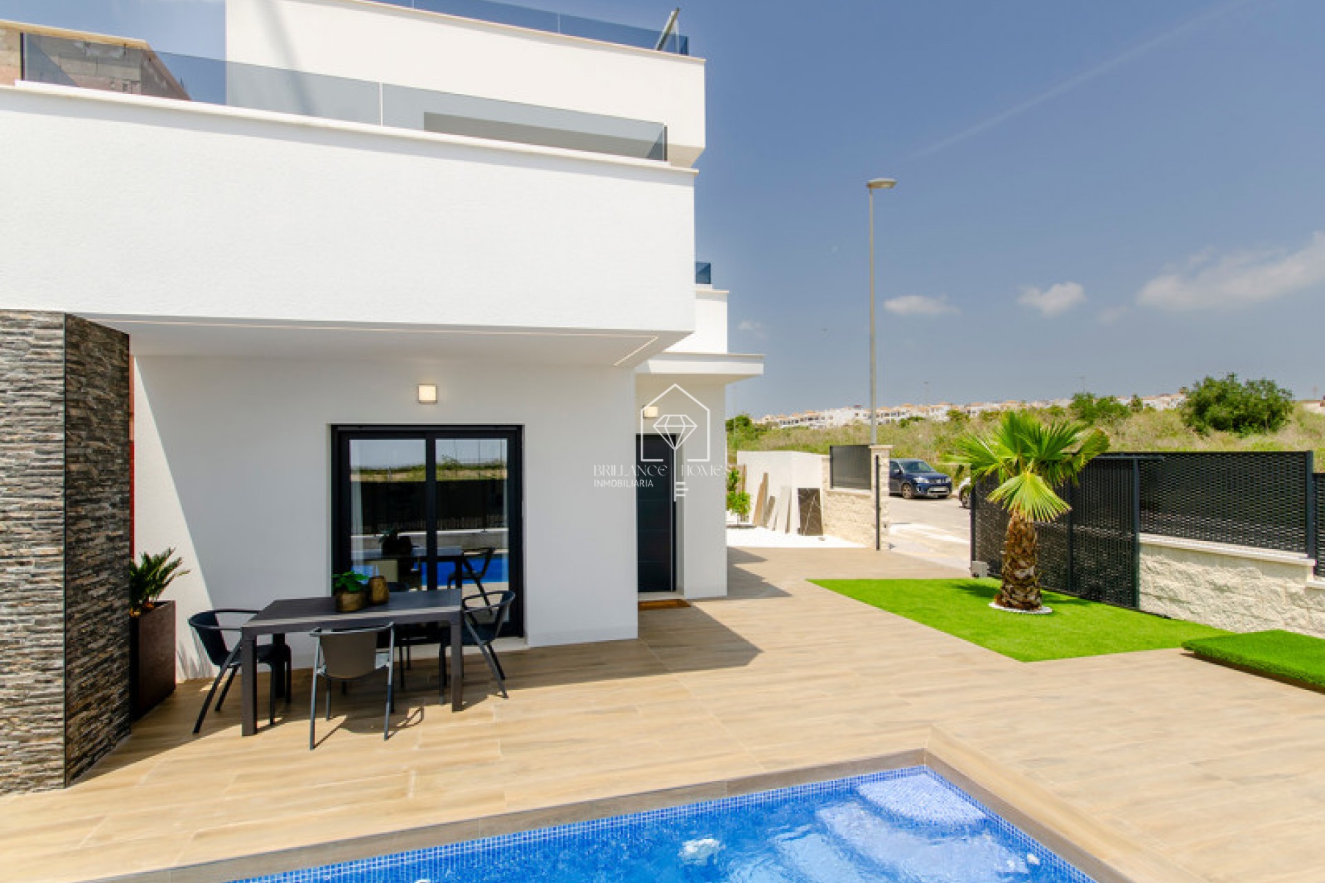 Discover the exquisite selection of newly constructed residences in Complex. This esteemed development comprises 16 villas situated in the picturesque surroundings of Vistabella Golf. Each villa is meticulously crafted on expansive plots starting from 174 m², featuring landscaped gardens, a private swimming pool, and convenient parking. These stunning residences offer 3 spacious bedrooms and 3 bathrooms, complemented by an extensive living room with an open-concept kitchen. The design integrates modern amenities, including solar panels on the roof, with an option to add a terrace to soak in the abundant Spanish sunlight throughout the day. Each villa is completed with fully finished bathrooms equipped with underfloor heating, a fully fitted kitchen with high-end appliances, built-in wardrobes, and electric blinds. Owning a property here not only means enjoying a contemporary living environment but also the peace of mind that comes with low-maintenance, eco-friendly living solutions. The inclusion of solar panels and underfloor heating emphasizes the commitment to sustainable and comfortable living. Residing at Complex puts you at the heart of a vibrant lifestyle in Orihuela. The development is strategically situated with essential amenities such as a supermarket, bars, and restaurants easily accessible. For golfing enthusiasts, the 18-hole course at Vistabella Golf offers a serene escape in the midst of nature. The bustling town of Orihuela is just a stone's throw away, and the charming village of San Miguel de Salinas is a mere 10-minute drive. Additionally, the pristine beaches of Torrevieja are only 15 minutes away, offering the perfect coastal retreat.