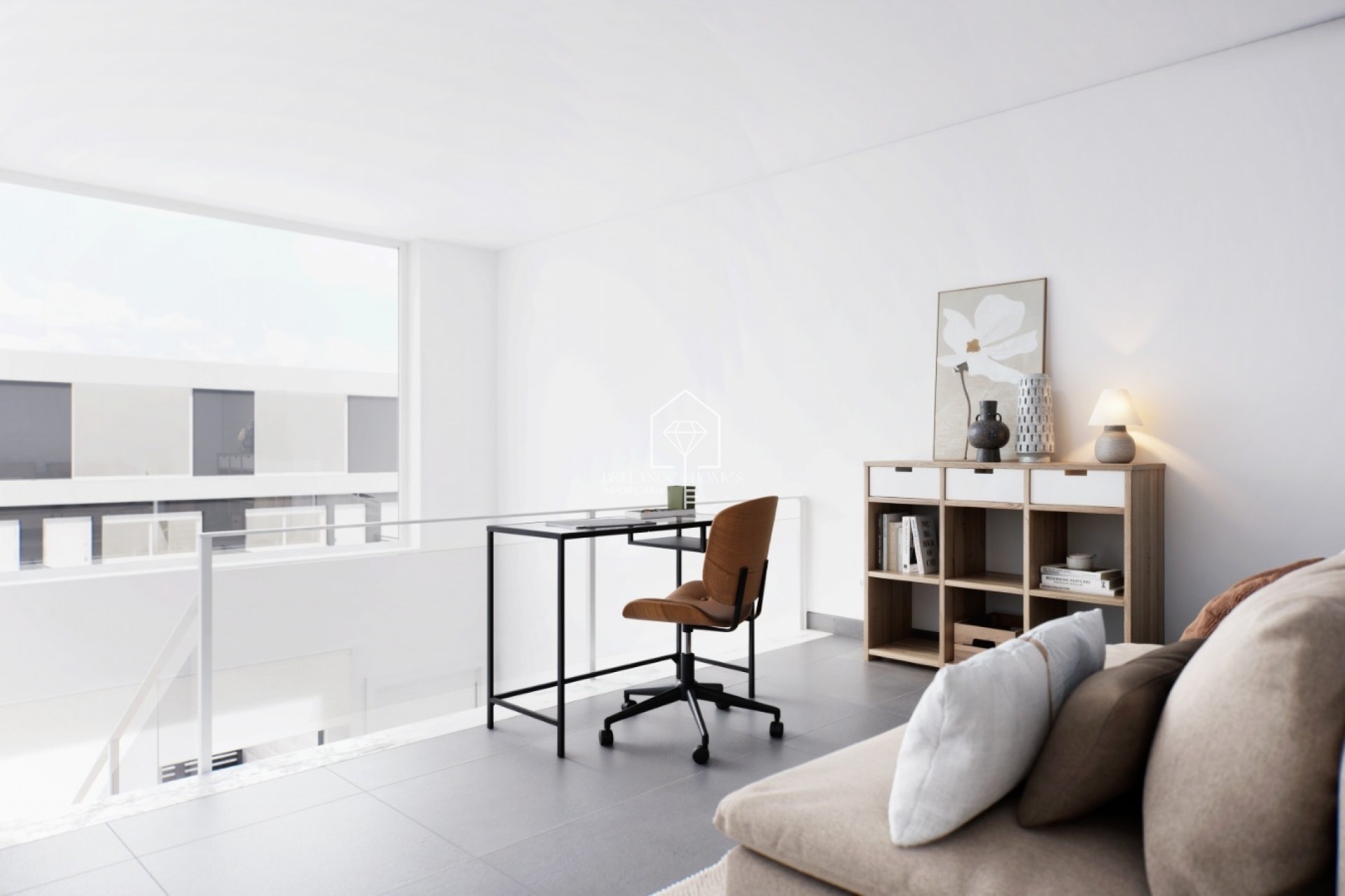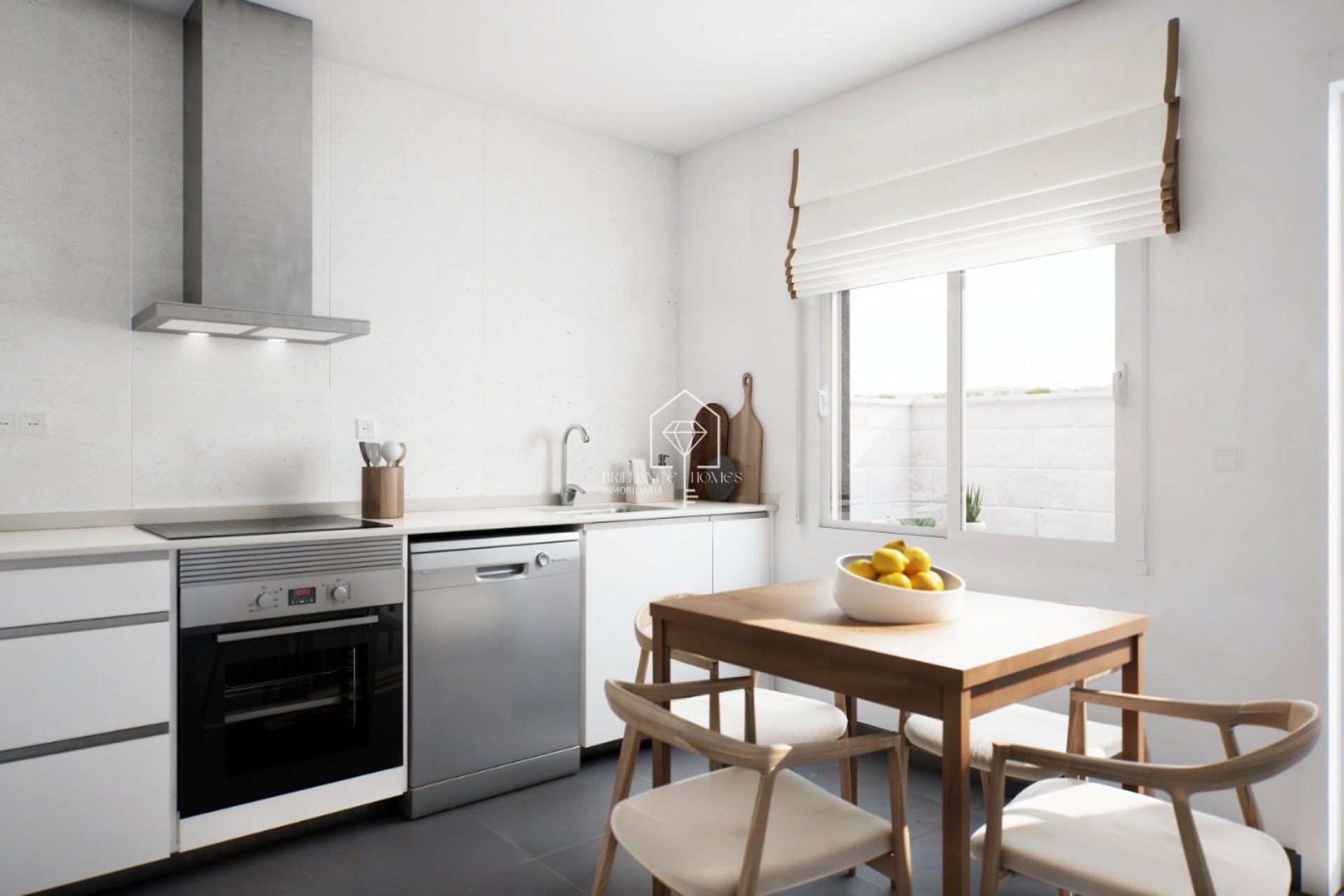 La maison peut être divisée en 2 ou 3 chambres, une cuisine semi-indépendante ou américaine, 3 salles de bain et un solarium privé dans chaque maison. L'intérieur de la maison sera fini avec des matériaux en porcelaine aux tons chauds de Porcelanosa, ainsi que des meubles de cuisine et des appareils électroménagers.