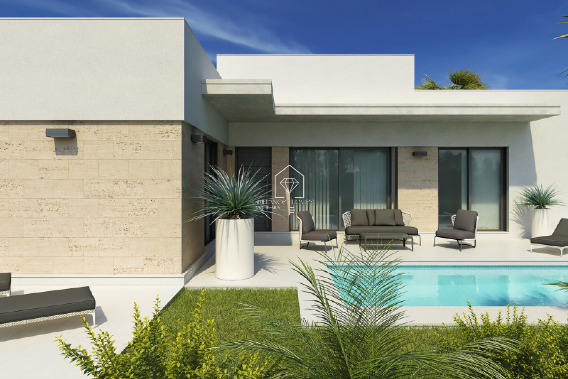 Onroerend goed in NUEVA DAYA VILLAS FV Ontdek deze moderne vrijstaande villa's in een bevoorrechte omgeving in het zuiden van Alicante. Gelegen in een rustige woonwijk van Daya Nueva combineren ze de rust van het platteland met de nabijheid van de mediterrane stranden, op slechts 10 minuten rijden. Elke woning is ontworpen in een eigentijdse stijl, waarbij aan elk detail is gedacht voor maximaal comfort. Met een oppervlakte van ongeveer 111 m², gebouwd op één verdieping, beschikken de villa's over 3 slaapkamers en 2 badkamers, met inbegrip van een ruime hoofdslaapkamer met optionele kleedkamer en en-suite badkamer. Het hart van de woning is een ruime woon-eetkamer met een dubbel hoog plafond, wat zorgt voor uitzonderlijke helderheid en ruimte, naast een keuken met kookeiland die de ruimtes op een praktische en elegante manier verbindt. Daarnaast is er de mogelijkheid om een privaat solarium toe te voegen, perfect om het mediterrane klimaat het hele jaar door te benutten. Buiten biedt elke woning een privé kavel met individueel zwembad, tuin en ruimte voor familieplezier. De locatie is ideaal: een serene omgeving, op loopafstand van het centrum van de stad, met alle essentiële voorzieningen en uitstekende verbindingen met de snelweg A-70. De internationale luchthaven van Alicante ligt op slechts 25 minuten, wat deze villa's een ideale keuze maakt als zowel permanente residentie als vakantiewoning. Als je op zoek bent naar een thuis waarin natuur, rust en modern design samenkomen, zijn deze villa's in Daya Nueva de perfecte kans voor jou.