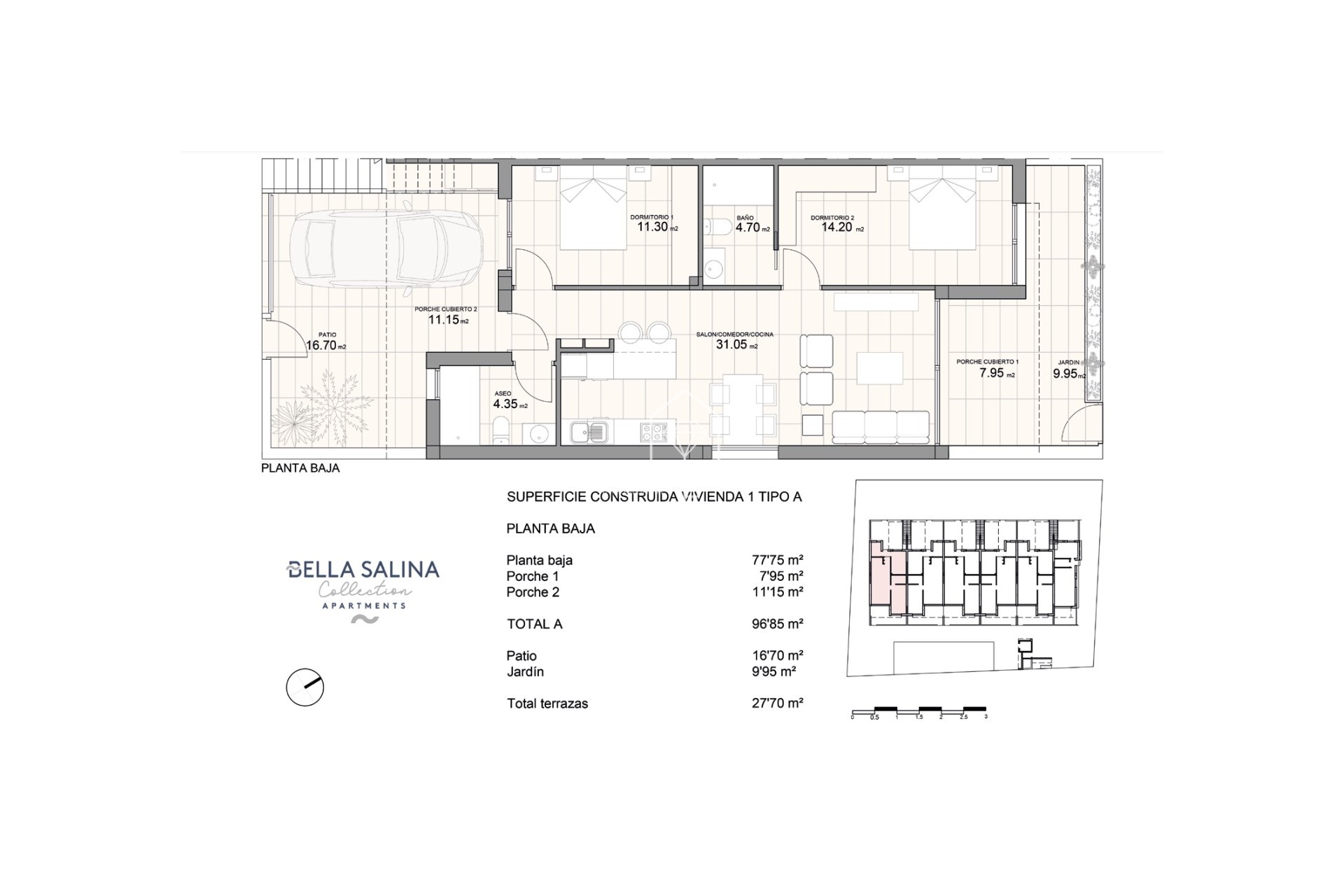Bella Salina Collection met een nieuw exterieurontwerp opent een tweede fase in Pilar de la Horadada, 12 appartementen en fantastische gemeenschappelijke ruimtes! De nieuwe residentie heeft een privégarage buiten, fietsenstalling met een elektrisch oplaadpunt, grote tuinzones, een kleedkamer/toilet voor meer comfort en een minimalistisch zwembad met een strandgedeelte uitgerust met ligbedden voor jouw plezier. De bouw zal worden uitgevoerd met materialen van topkwaliteit en energiebesparende systemen, naast andere technologieën zoals het op afstand openen van deuren. Appartementen met de mogelijkheid van 1 of 2 slaapkamers, keuken open naar de woonkamer, met verschillende modellen om uit te kiezen, terras en tuin op de begane grond appartementen, en solarium op de bovenste verdieping, allemaal verdeeld om het meeste uit de ruimte te maken, te profiteren van hun oriëntatie op het zuiden en het aanbieden van een plus van comfort in uw dag tot dag. De apparatuur in de appartementen zijn ook gericht op comfort met LED-verlichting, warme en koude airconditioning door leidingen met thermostaat in de woonkamer, warm water door Altherma systeem, badkamers volledig uitgerust, elektrische apparaten zijn inbegrepen en een project van decoratie om hen stijl en warmte. Alle dagelijkse benodigdheden, zoals supermarkten, banken, apotheken, bars en restaurants zijn zeer dicht bij de residentiële. De gemeente biedt ook een keur aan sportfaciliteiten, zoals een overdekt zwembad, voetbalvelden, tennis/padelbanen enzovoort, evenals een keuze uit vijf golfbanen in de omgeving. De prachtige stranden van Torre de la Horadada liggen op slechts 10 minuten rijden met de auto, waar het mogelijk is om te genieten van een aantal nautische activiteiten. Pilar de la Horadada is het hele jaar door een drukke stad, met een grote mix van nationaliteiten en zeer goed verbonden via de snelweg met de steden Alicante, Cartagena of Murcia, op gelijke afstand van zowel Murcia als de luchthaven van Alicante. Absoluut een prachtig gebied waar je kunt genieten van de stranden van de Middellandse Zee, maar ook van de nabijheid van topgolfbanen of het winkelcentrum La Zenia.