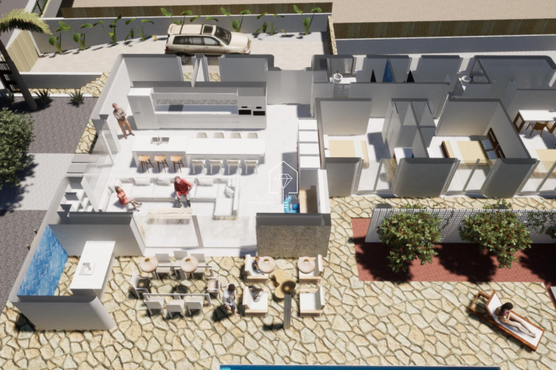 Deze indrukwekkende villa ligt in de charmante regio van Alicante, Alfaz del Pi, en biedt de perfecte balans tussen rust en toegang tot essentiële voorzieningen zoals scholen, winkels en het sportcentrum. De villa onderscheidt zich door een avant-gardistisch ontwerp, met een woonkamer met een uitzonderlijk hoog plafond dat ruimte en licht creëert. De woonkamer is verbonden met een moderne 'cocina americana' inclusief een eiland dat naadloos overgaat in de eetkamer. De grote, schuifbare ramen zijn een sleutelelement in het ontwerp en verdwijnen in de muren wanneer ze geopend worden, wat zorgt voor een vloeiende overgang naar buiten. Deze villa wordt vervolledigd met een overdekt terras dat uitnodigt om van de buitenomgeving en het elegante privézwembad te genieten. Met drie beschikbare slaapkamers is de hoofdslaapkamer een oase van comfort, uitgerust met een inloopkast en een en-suite badkamer. Leven in Alfaz del Pi biedt een ideale mix van stedelijkheid en rust, wat deze plek comfortabel en veilig maakt. De veelzijdigheid van het ontwerp biedt opties voor een kelder of alleen een begane grond. In de versie met kelder is er een praktische trap aanwezig; als men alleen kiest voor de begane grond, kan de ruimte worden aangepast als extra badkamer of opslagruimte, afhankelijk van specifieke behoeften.