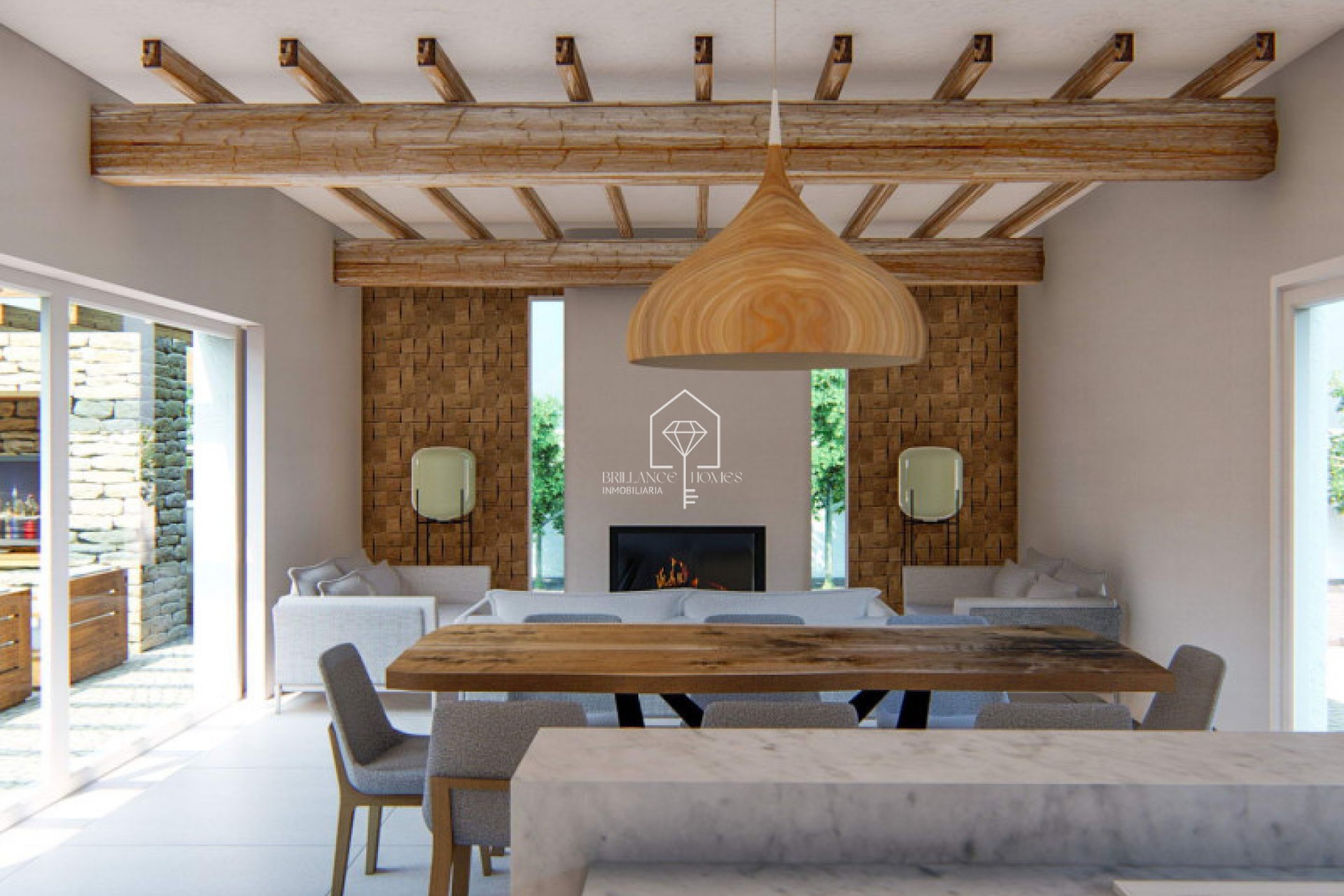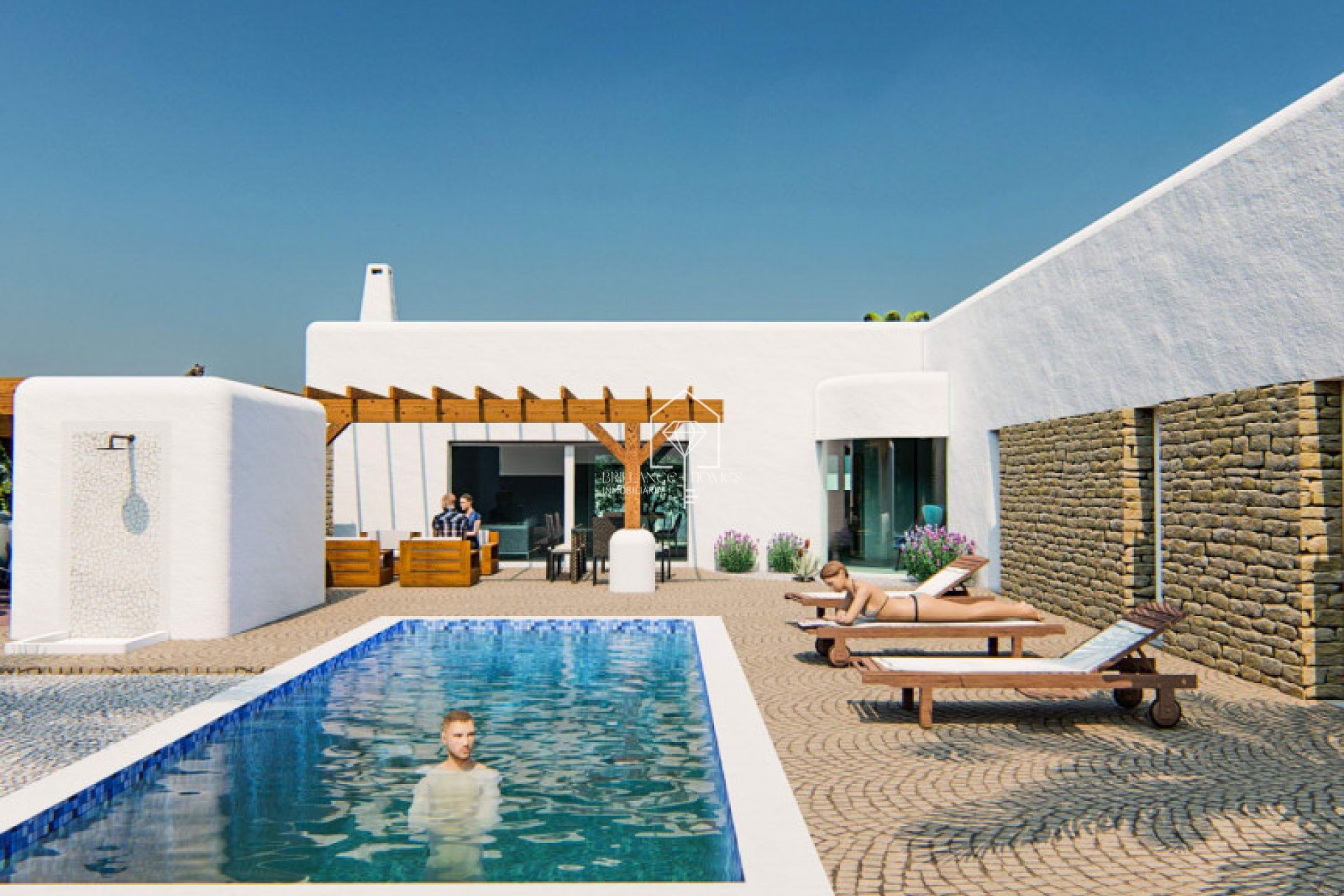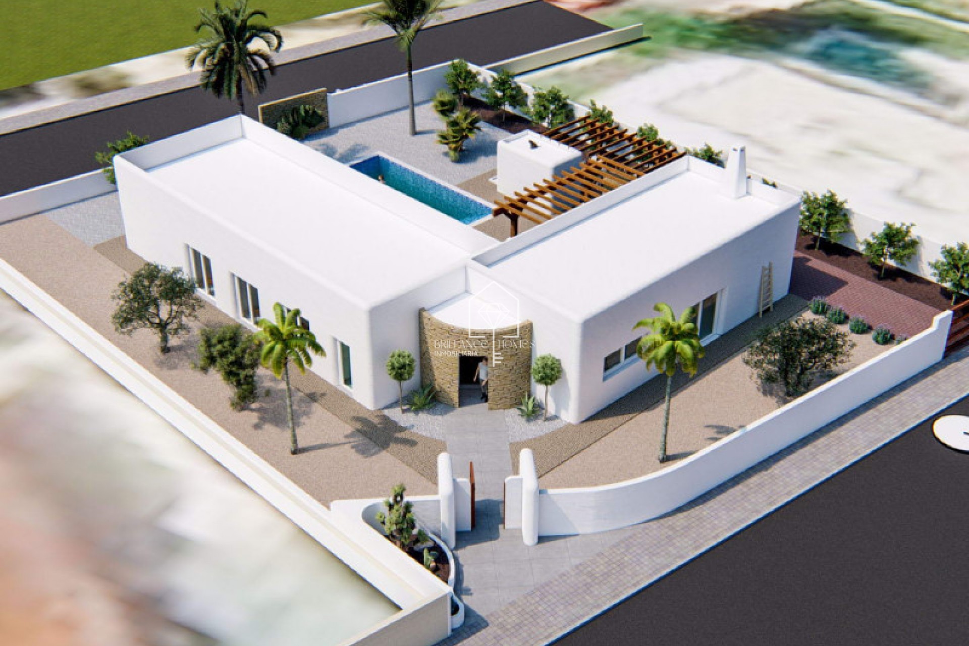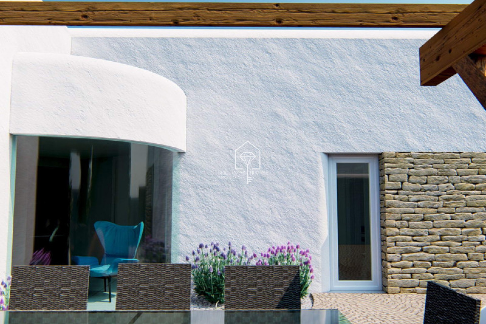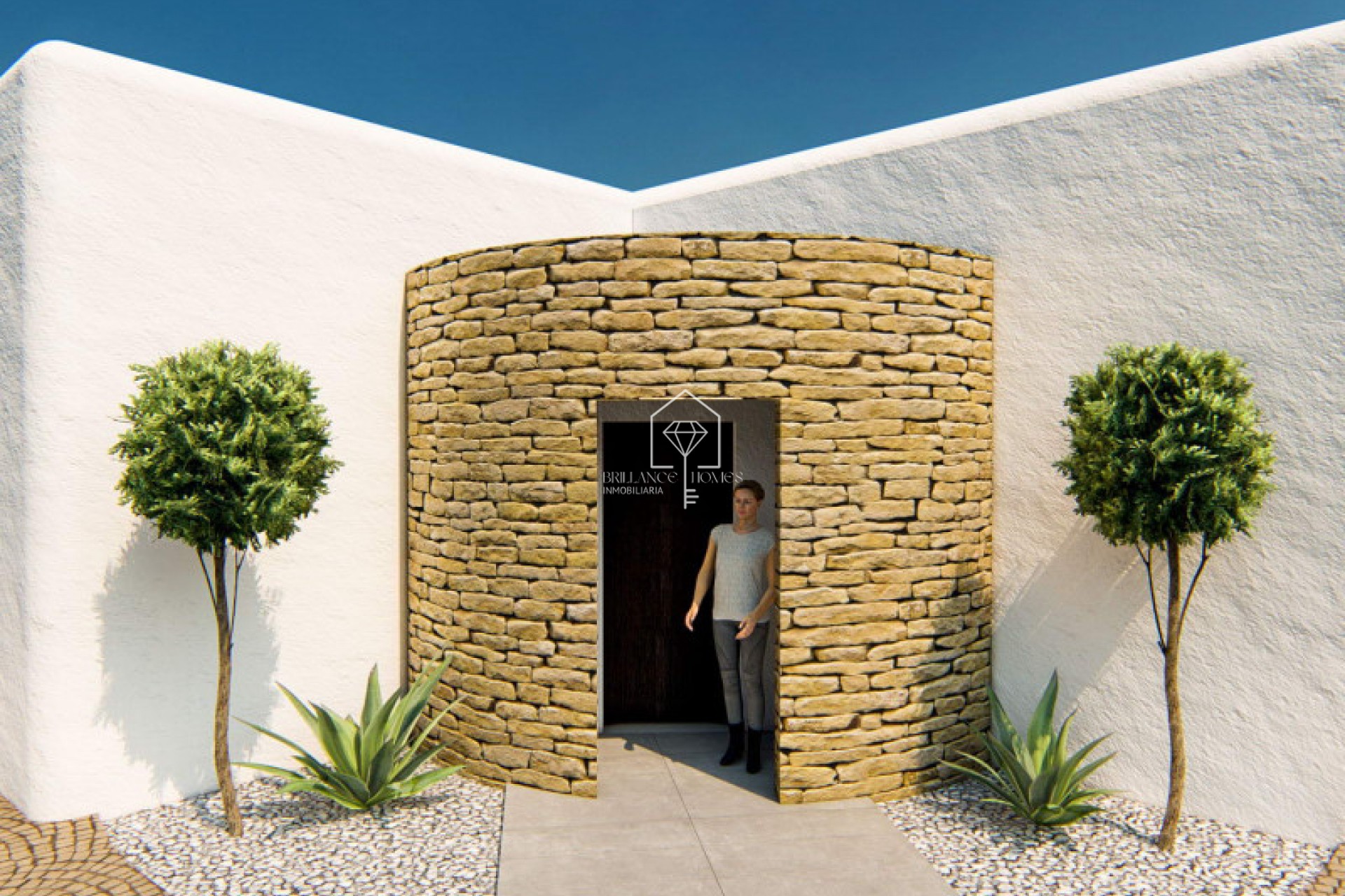 Eksklusiivinen ibizalaistyylinen projekti kauniilla tontilla, joka sijaitsee Alfaz del Piä, Partido el Arabi -kadun ja Mallorca-kadun välissä, Urbanización El arabi -alueella. Kyseessä on yksikerroksinen talo, joka on suunniteltu "L"-muotoiseksi, ja siinä on julkinen osa (keittiö, olohuone ja ruokailutila) sekä yksityinen osa (3 makuuhuonetta, 2 kylpyhuonetta, 1 toimistotila, 1 pesutupa). Nämä osat ovat yhdistettyinä pyöreällä käytävällä, jossa on kaareva lasi, joka toivottaa käyttäjän tervetulleeksi saapuessaan taloon (selfiekohta #1), näkymä oliivipuuhun ja suuri etelään suuntautuva terassi/allasalue. Yksityisellä alueella on tavallista korkeampi kattokorkeus, koristeltu puupalkeilla, puupaneeleilla ja keittiöpaneeleilla. Siellä on valtava liukuikkuna, joka on upotettu seinään ollessaan kiinni, ja se yhdistyy suureen pergolaan, joka toimii puskurivyöhykkeenä sisätilan ja allasterassin välillä (selfiekohta #2). Projektiin kuuluu myös ulkovarasto ja suuri pergola pysäköintialueen yläpuolella.