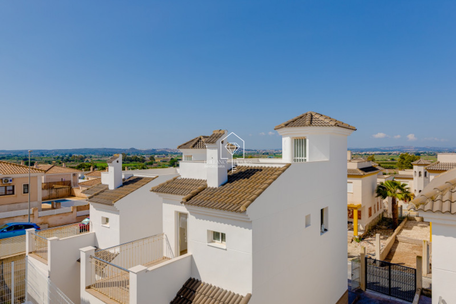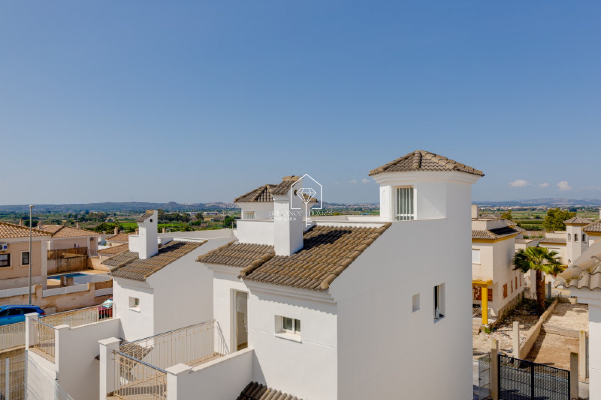 Een nieuwbouwproject voltooid in 2010 en bestaat uit 34 rijhuizen, gelegen in San Fulgencio, Alicante. Deze locatie biedt een comfortabel en handig leven met een uitstekende infrastructuur en nabijheid van cafés, restaurants, bars, apotheken en drie grote supermarkten: Lidl, Aldi en Mercadona. De residentie is strategisch gelegen op slechts 10 minuten rijden van het strand en het beroemde familie- en recreatiecentrum van de regio, "La Marina Resort", dat beschikt over een waterpark, camping, fitnessruimte, spa, restaurants, winkels en cafés. Het beste van alles is de bevoorrechte ligging, op slechts 30 minuten rijden van de luchthaven, 40 minuten van de stad Alicante en 20 minuten van de stad Torrevieja. Elke woning in het complex "Bungavillas Sol" bestaat uit 3 slaapkamers, 3 badkamers, een gezellige woonkamer en een aparte keuken. Daarnaast geniet je van twee terrassen op de begane grond, een ander terras op de tweede verdieping en een ruim solarium om van de zon en het uitzicht te genieten. Elke woning heeft ook een eigen perceel, en in de residentie is er een groot gemeenschappelijk zwembad om van te genieten op warme dagen.