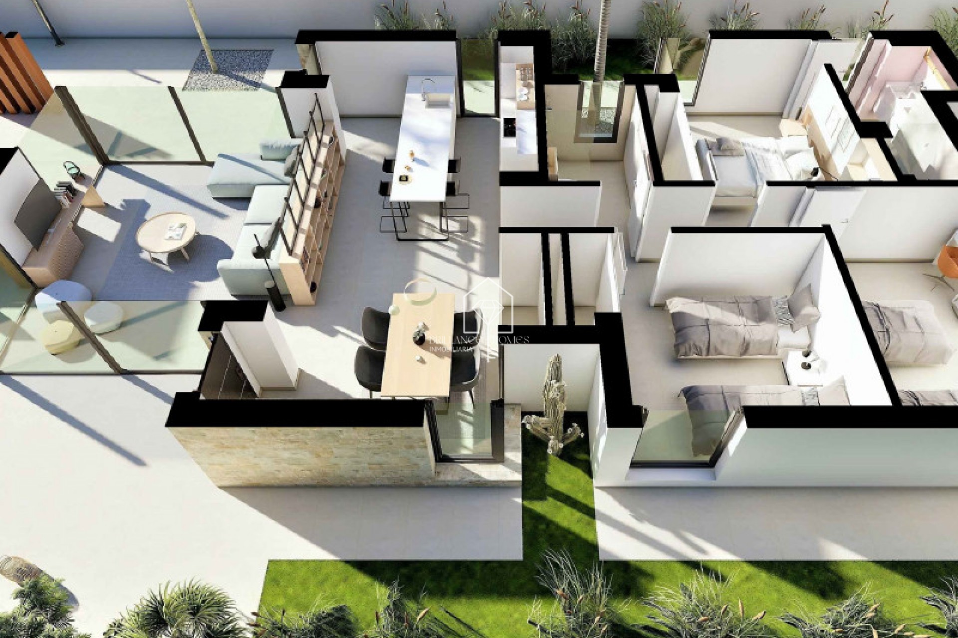 Estamos encantados de presentarles este espectacular proyecto de lujo, que consiste en inmuebles situados en una encantadora ubicación a solo 5 km de la costa. La localidad se encuentra en la parte sur de Alicante, dentro de la hermosa comarca de la Vega Baja del Segura. Su ubicación estratégica permite un fácil acceso a lugares cercanos, como ciudades notables y está a poca distancia del aeropuerto. Estas viviendas ofrecen un diseño innovador con un porche orientado al sur, que extiende el salón hacia un espacio exterior contemporáneo y funcional. Aquí podrá disfrutar de piscina privada, zona de barbacoa, área chillout y un amplio jardín, el entorno ideal para compartir momentos inolvidables con familiares y amigos en un ambiente íntimo y seguro. Las villas cuentan con un amplio salón comedor que se integra visualmente con el jardín, proporcionando abundante luz natural. La cocina, con isla, se conecta fluidamente con el comedor en un espacio abierto, convirtiéndose en el núcleo perfecto para la vida familiar. El diseño interior incluye amplias aberturas acristaladas que aseguran una comunicación directa con el exterior. Los muebles de líneas sencillas y claras, junto con detalles en madera, aportan calidez y sofisticación al entorno. Los baños están decorados en tonos naturales y cálidos, ofreciendo un rincón acogedor e invitando al relax. El dormitorio principal tiene un patio privado, creando un ambiente sereno y relajante, perfecto para el descanso. Vivir en estas propiedades no solo proporcionará la calidez de un hogar, sino también la oportunidad de disfrutar de innumerables experiencias dentro del mismo, gracias a un jardín que se convierte en una extensión enriquecida del espacio habitable. Las propiedades ofrecen tres dormitorios, espacios generosos con sala de estar, comedor y cocina. El exterior está completo con un muro perimetral, un jardín decorado con variedad de elementos y una piscina que incluye detalles como cascada y áreas de agua que brindan diferentes profundidades para un mayor disfrute. Contáctenos hoy para obtener más información sobre este prestigioso proyecto y no pierda esta magnífica oportunidad.