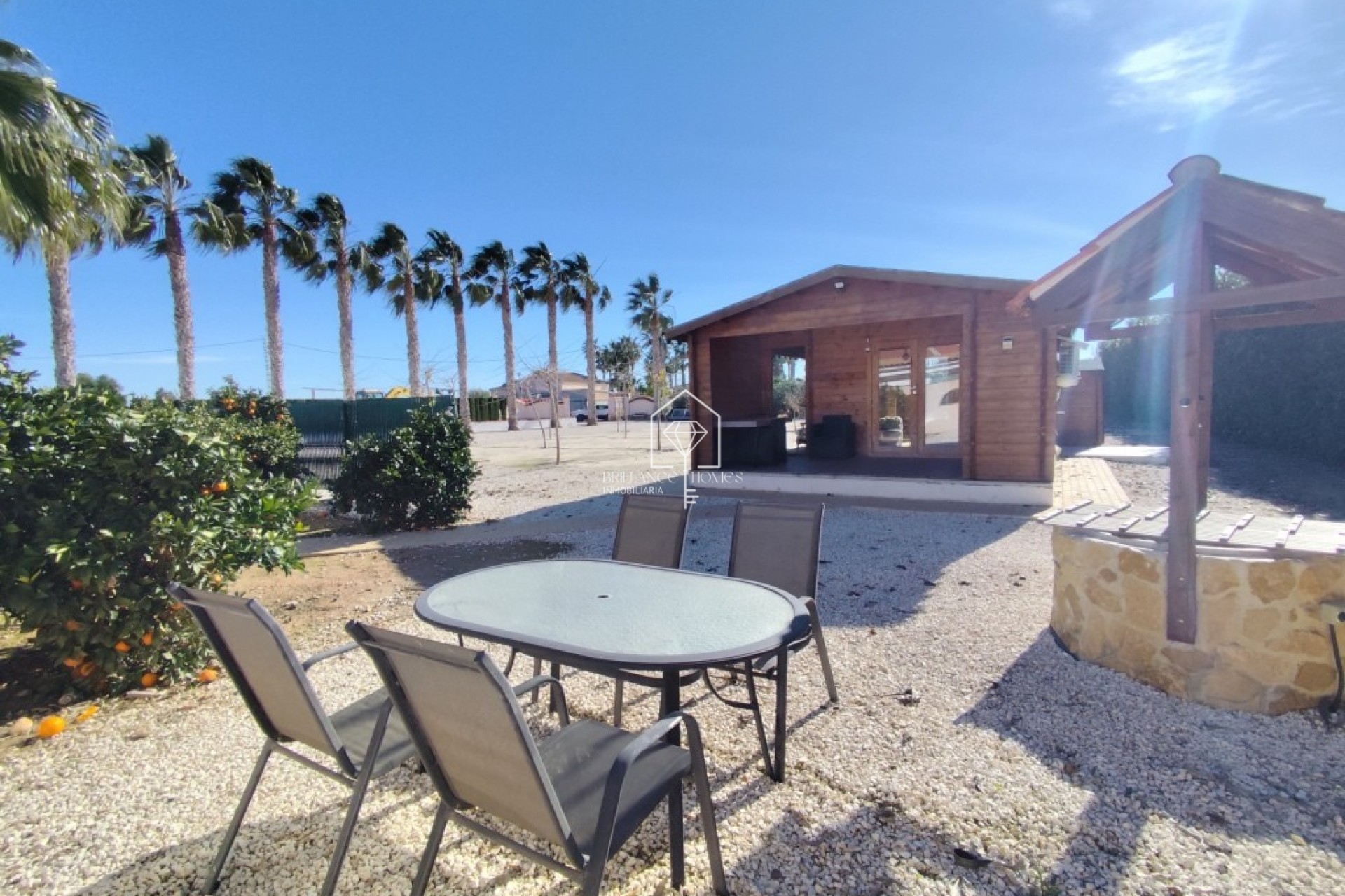 Exclusiva finca mediterránea con instalaciones de bienestar y vistas panorámicas Ubicada en un tranquilo valle de montaña, esta excepcional villa mediterránea combina una arquitectura atemporal, confort contemporáneo y elegancia minimalista. Rodeada de naturaleza y con una ubicación ideal, la última casa de una calle sin salida, la propiedad se encuentra a solo 13 km de la playa, a 40 km del aeropuerto de Alicante, a 2 km del pueblo con todos los servicios y a 7 km de La Finca Golf Resort. Finca privada de 5.600 m² La parcela de 5.600 m² totalmente cerrada, delimitada por altos muros, ofrece total privacidad y alberga la residencia principal junto con varios edificios anexos de alta calidad, todos diseñados para mejorar la comodidad, el ocio y el bienestar. Residencia principal – Vivienda de lujo con orientación sur (165 m²) La villa principal disfruta de una soleada orientación sur y cuenta con: Cocina abierta y comedor con vistas panorámicas al campo, a las montañas y a la piscina. Elegante sala de estar de forma ovalada Habitación doble con baño en suite Dormitorio principal con vestidor, baño integrado y WC separado. Los grandes ventanales garantizan abundante luz natural y una perfecta integración entre el interior y el exterior. Alojamiento para huéspedes y edificios adicionales Casa de huéspedes de madera (50 m²) con dormitorio doble, porche y terraza cubierta que incluye cocina y comedor. Cobertizo de almacenamiento de madera con inodoro Vida al aire libre estilo resort Las zonas exteriores están pensadas para el relax y el entretenimiento: Piscina (50 m² de superficie de agua, 1,5 m de profundidad) Ducha solar y amplia zona chill-out Zona de barbacoa al aire libre con parrilla de acero Comedor exterior totalmente equipado (15 m²) Incluye placa de inducción, horno tradicional, horno de pizza, fregadero, barra y espacio para comer: perfecto para recibir a familiares y amigos. Instalaciones de bienestar Edificio de bienestar acristalado (40 m²) con sauna tradicional, sauna de infrarrojos y zona de relajación con vidrio insonorizado. Edificio Técnico y de Servicios (40 m²) Estacionamiento cubierto para dos autos. Trastero con cámara frigorífica Sala de limpieza Porche y espacio multifuncional acristalado Equipado con 14 paneles solares para eficiencia energética. Seguridad y tecnología La propiedad ofrece características de seguridad avanzadas, que incluyen: Puertas de acceso eléctricas con videoportero. Cámaras de vigilancia Detectores de movimiento interiores y exteriores con control centralizado Doble acristalamiento antirrobo con filtros solares y mosquiteras. Características adicionales Parcialmente amueblado, incluidos electrodomésticos. Agua corriente y electricidad Calefacción eléctrica con radiadores Aire acondicionado (frío y calor) y conexiones de TV/Internet en todos los edificios. Pozo de agua privado Árboles frutales, olivos y palmeras Espectaculares vistas abiertas al campo y a las montañas circundantes. Esta extraordinaria propiedad ofrece privacidad, lujo y bienestar en un entorno natural único, lo que la hace ideal como residencia permanente, refugio de vacaciones o inversión exclusiva. Comuníquese con Sunrisa hoy para obtener más información o para concertar una visita privada a esta extraordinaria propiedad.
